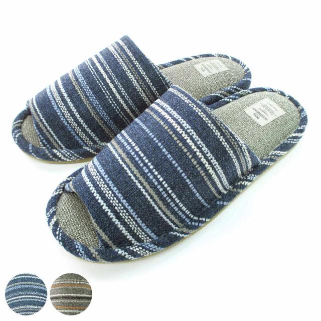スリッパ 大きい メンズ 28.0〜29.0cm シェニール織風 ( ポリエステル 静音 大き目 大きめ ボーダー ルームスリッパ ルームシューズ 室内履き 快適 ゆったり 広め 幅広 前開き 大人 )