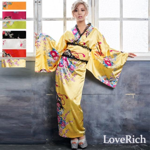 LoveRich ラブリッチ レースフリルリボン付きサテン花魁着物ドレス コスチューム コスプレ キャバドレス [1004]