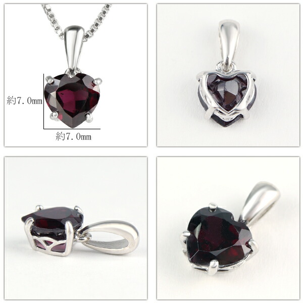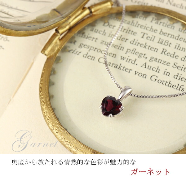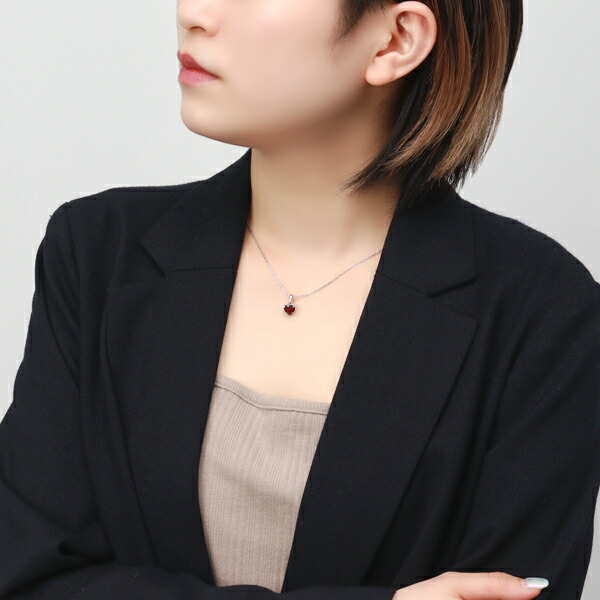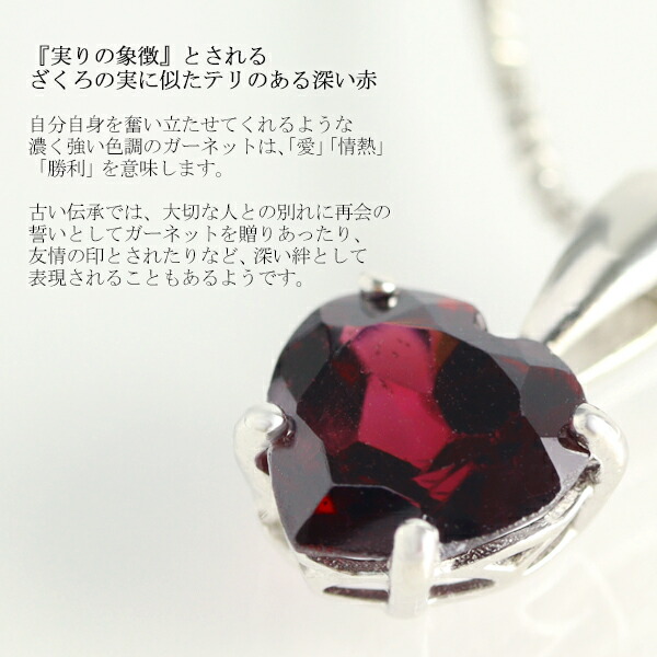 天然 ガーネット ハート 一粒 ネックレス シルバー925 1月 誕生石 天然石 赤 レッド バーガンディ シンプル さりげない 上品 大人