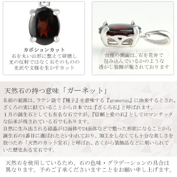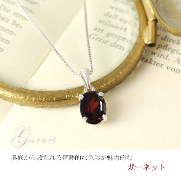 天然 ガーネット カボションカット 一粒 ネックレス シルバー925 1月 誕生石 天然石 赤 レッド 楕円 オーバル シンプル さりげない