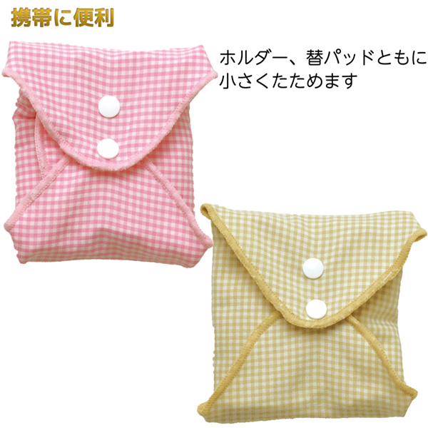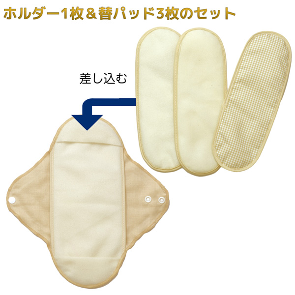 布ナプキン 洗える 布パッド セット ホルダー1枚+替パッド3枚 日本製‐吸水パッド おりもの 軽失禁 尿漏れパッド 吸水ライナー おりものライナー 昼用 25〜30cc 綿 コットン 20cm 22cm