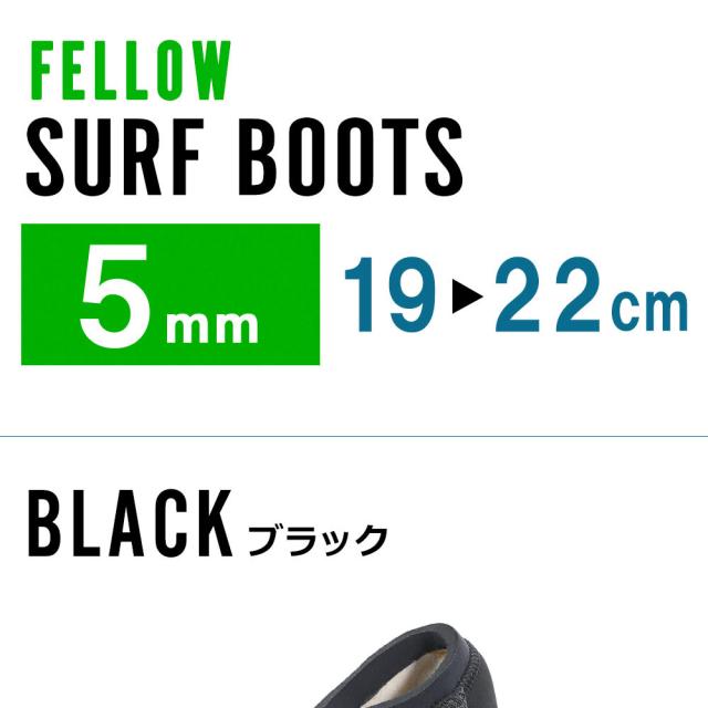 FELLOW サーフブーツ 5mm キッズ 19-22cm ウェットブーツ 保温 防寒 サーフィン SUP 裏起毛 速乾 スプリット