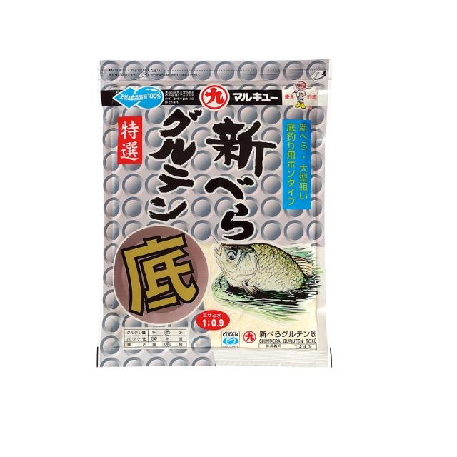 「新べらグルテン」のボソタッチを活かしながら重さを加えた底釣りタイプのグルテンエサ。マッシュのヌケがよく、適度な重さで、