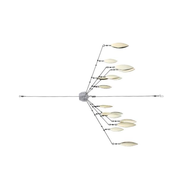 アームの外側に行くに従い大きいブレードを配置することで、フラッシング効果と水を攪拌する能力を向上させると共にアラバマリグを使用する上で重要となる”釣れる抵抗感”を生み出します。