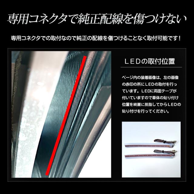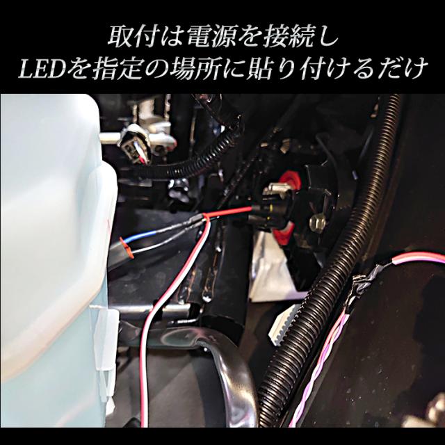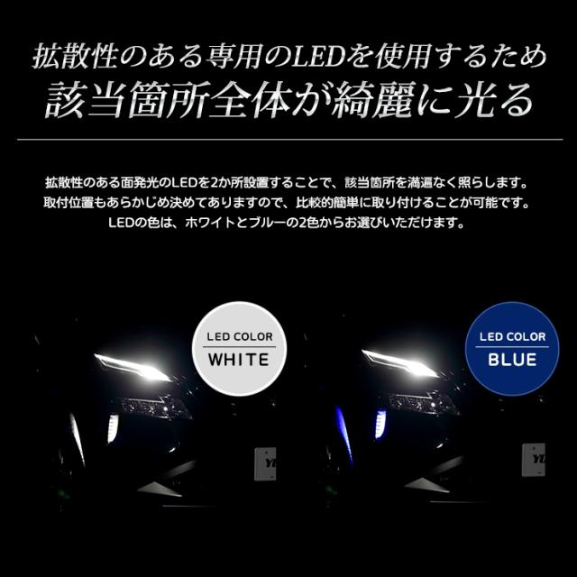 ・ホワイトorブルーのインパクトのある専用LEDで、他車と差別化できる人気のカスタマイズです。 ・拡散性のあるLEDを使用しているため、該当箇所がきれいに光ります。 ・取付位置も予め決めてあり、写真付きの取扱説明書もございますので比較的簡単に取り付けが可能です。 ・LED本体の裏側には両面テープ付き。電源を取ってきてLED配線と接続させるだけでOKです! ・専用カプラー付き配線なので純正配線を傷つけないのもポイントです。 |