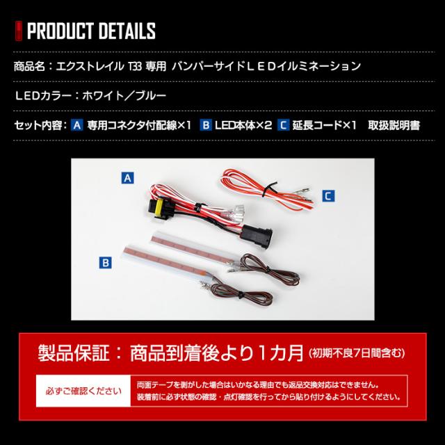| 商品名 | エクストレイル T33 専用 バンパーサイドLEDイルミネーション |