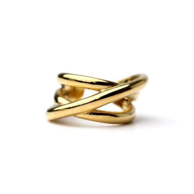 上品な艶感のゴールド甲丸線で重なり合うように交差させながら仕上げたリング