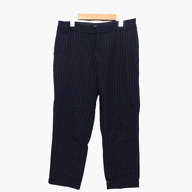 【中古】レイビームス Ray Beams テーパード パンツ ストライプ 柄 ロールアップ ウール 毛 0 ブラック 黒 /HT23