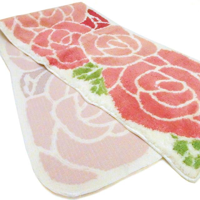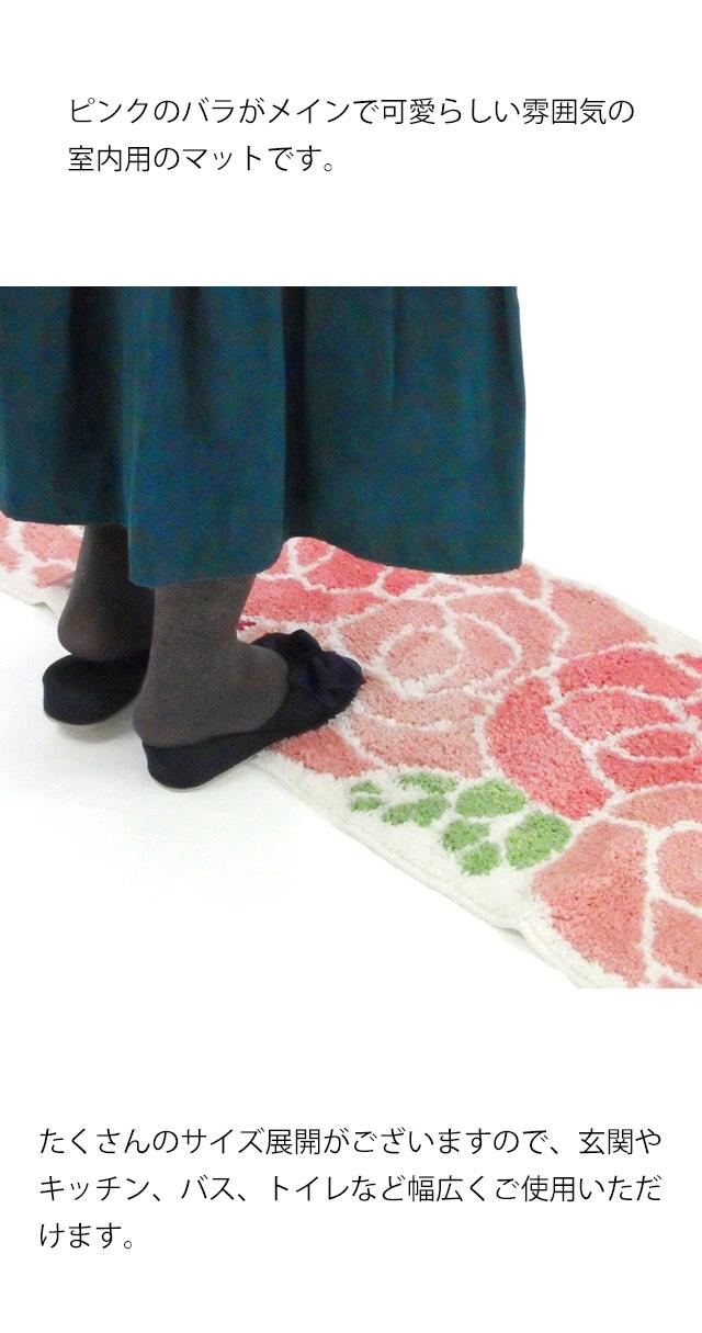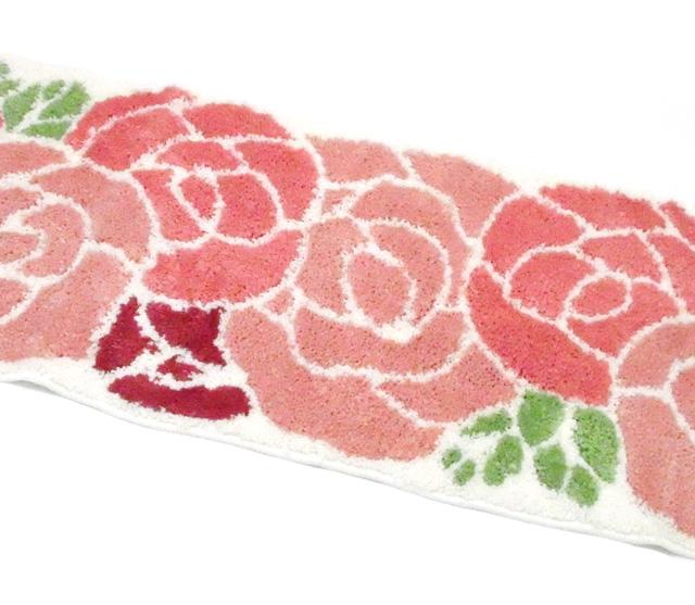 キッチンマット ローズ 薔薇型 バラ柄 室内用 玄関マット フロアマット ポリエステル 滑り止め加工 薔薇雑貨 敬老の日 ギフト
