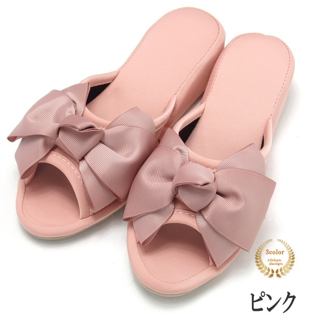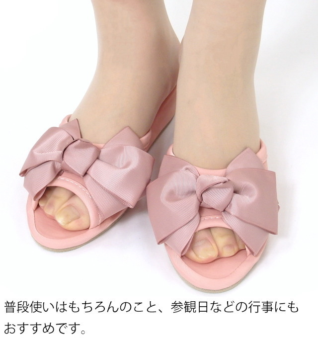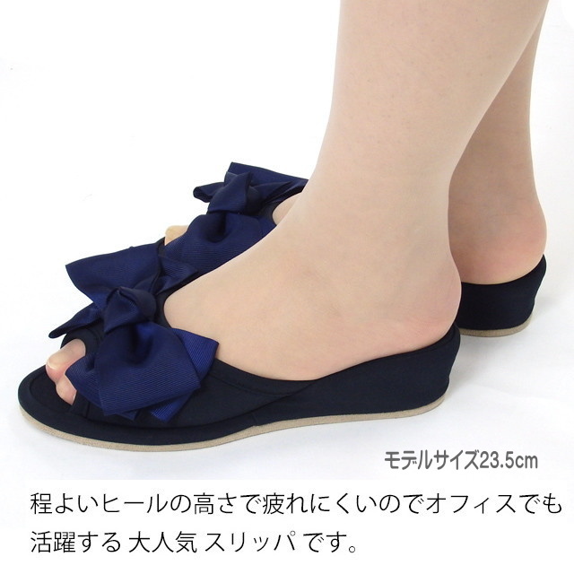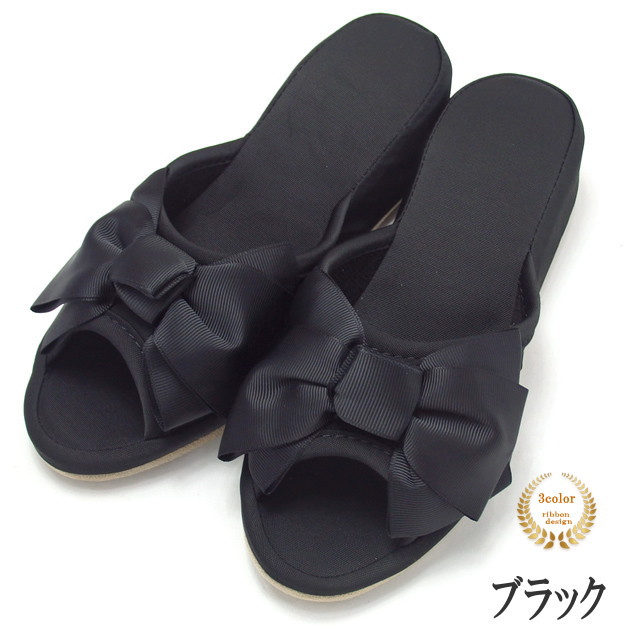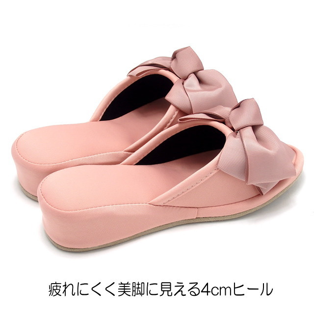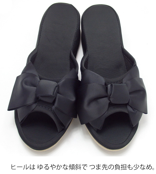 スリッパ ヒール リボン 4cm 室内履き ルームシューズ おしゃれ かわいい 室内 卒園式 黒 美脚 入園式 会社 卒業式 入学式