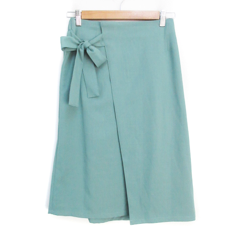 【中古】アーバンリサーチ URBAN RESEARCH フレアスカート ミモレ丈 リボン 無地 F 緑 グリーン /FF35 レディース