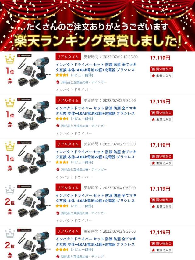 インパクトドライバー セット 防滴 防塵 全て マキタ 互換 本体+3.0Ah電池x2個+急速充電器 ブラシレス 国内正規品 18V Heimerdinger 送料無料