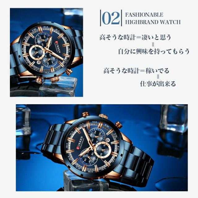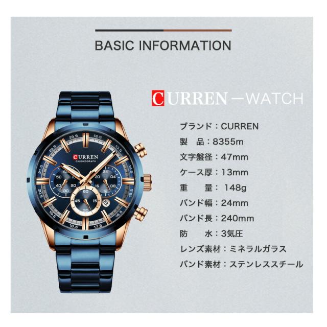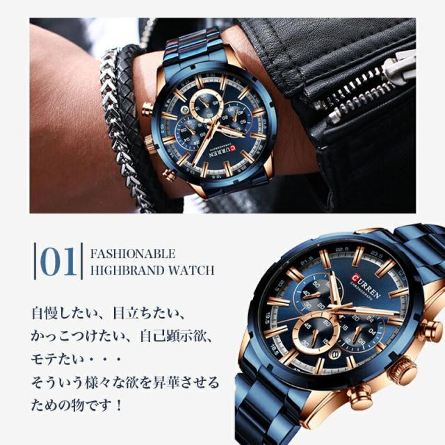ハイブランド製 モテイキリウォッチ curren 8355 デカ文字盤 スーツ セットアップ 日本メーカー 正規品 メンズ メタル 高級感 革