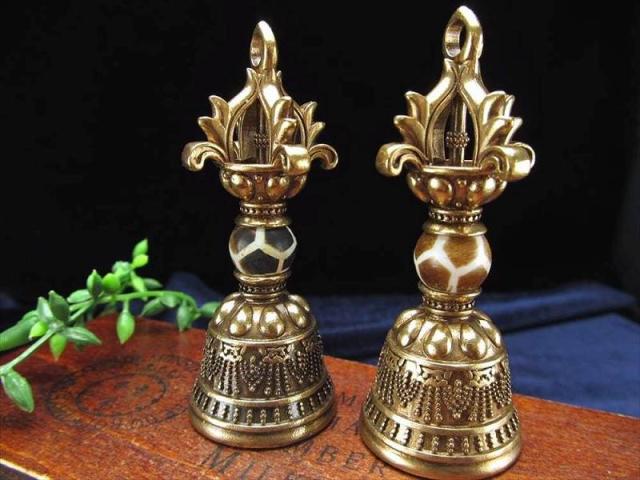 天珠×密教法具の開運と魔除けを一緒にしたベストな組み合わせの天珠法具が誕生しました。 ここまで秀逸な組み合わせは滅多にありません。 こちらの金属部分は繊細な彫刻を施してあり、素材は黄銅製になっており、 銅には心を静める意味があると云われています。 天珠の素材はアゲートを使用しており、天然石と鉱石をミックスした商品になります。 デザインペンダントとして使用することもできますので、オススメですよ。 厄除けのお守りにぴったりの逸品です。 この機会に是非。 【亀甲長寿天珠】 長命百歳・無病息災・事故防止・吉事招来 亀の甲羅になっている天珠。 亀は昔から健康や長寿の象徴とされています。 また、多くの吉事や慶び事を招くと云われています。 【ガンター(金剛鈴)とは】 鐘の音は神を歓迎し、魔を払いのける音色があると考えられています。 縁起の良いとされるベルの音は、雑念の精神状態から精神をコントロールし、物事に集中するのに役立つと言われています。 本場チベットでは、ガンターに強力な力を秘めていると考えられており、一般的なお守りとして使用されています。 |