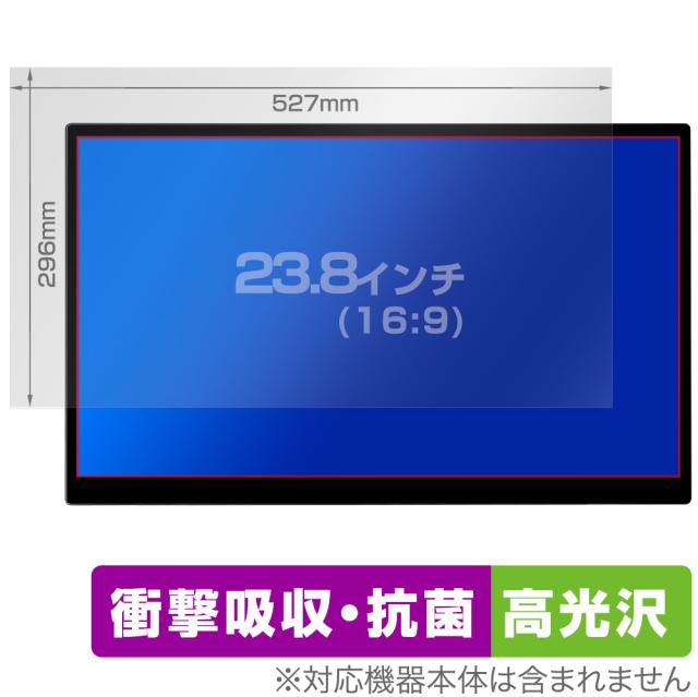 23.8インチ(16:9) 汎用サイズ OverLay Absorber 高光沢 衝撃吸収 高光沢 ブルーライトカット 抗菌 保護フィルム(527x296mm)