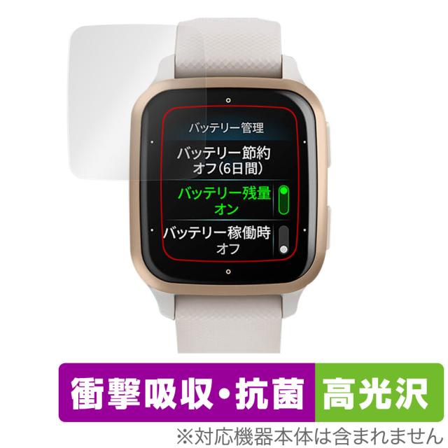 GARMIN Venu Sq 2 Music / Sq 2 保護 フィルム OverLay Absorber 高光沢 for ガーミン ヴェニュー Sq2Music Sq2 衝撃吸収 高光沢 抗菌