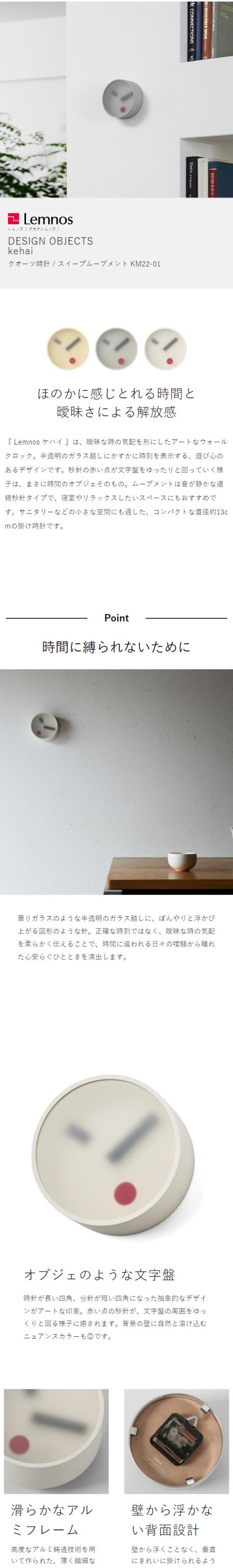 [ Lemnos kehai ]レムノス 掛け時計 ケハイ 壁掛け時計 スイープ 時計 おしゃれ ウォールクロック 静音 掛時計 かけ時計 13cm モダン デザイン 小泉誠 インテリア 日本製 タカタレムノス けはい KM22-01【送料無料】