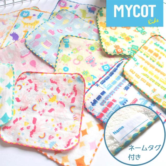 MYCOT ミニハンカチ 今治 ガーゼ ハンカチ 今治タオル ハンドタオル お名前タグ付 入園準備 かわいい ベビータオル ハンカチタオル 幼児用 ギフト プレゼント ポイント消化