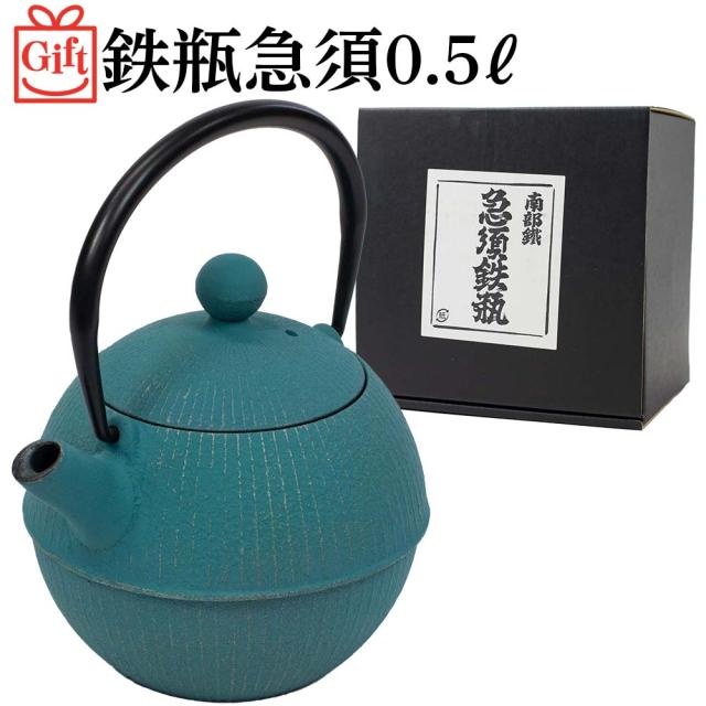 鉄瓶急須 手まり(ターコイズブルー)0.5リットル(茶こし付)