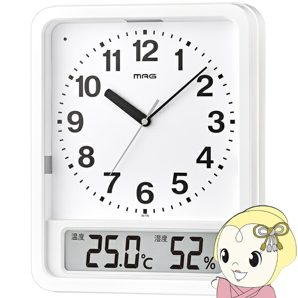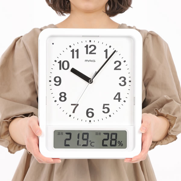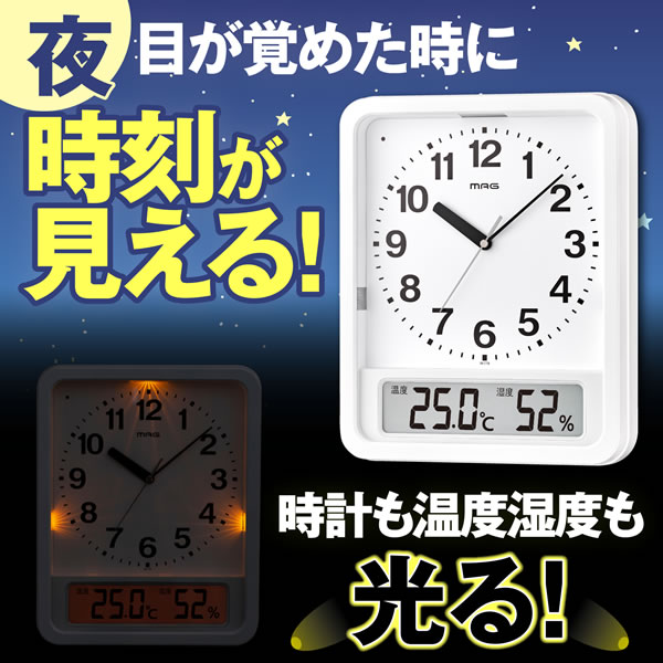 掛け時計 ノア精密 アナログ MAG マグ 電波 温度 湿度 熱中症 対策 置き掛け兼用 夜見える 自動点灯 ルック ホワイト W-779