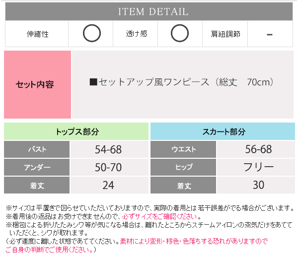 バスト 54-68cm アンダー 50-70cm 着丈 24cm