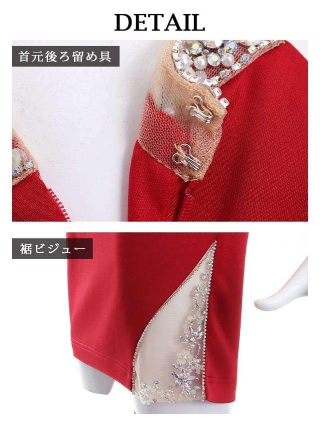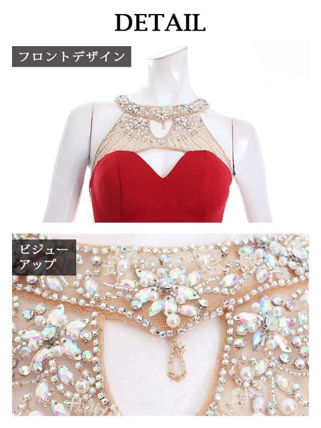 ☆ビジューのホルターネックデザインが高級感と華やかさを放つキャバドレスです。