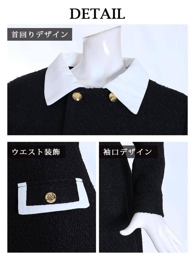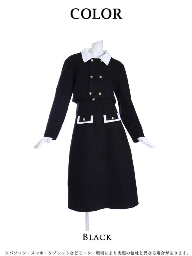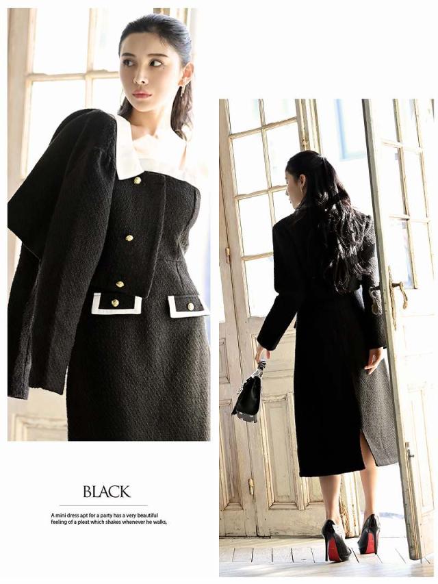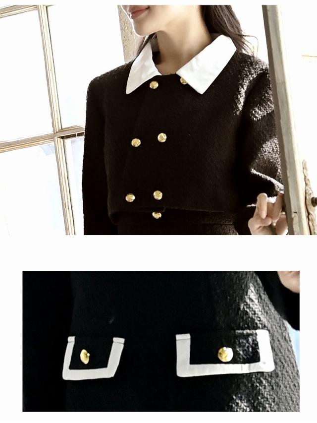 ☆ショート丈ジャケットとフレアワンピースがセットになった大人可愛い韓国ワンピーススーツです。