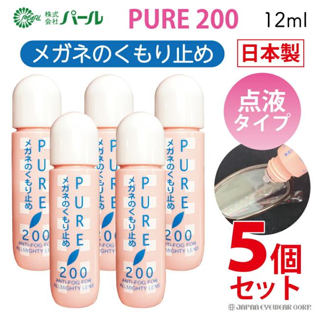 くもり止め 曇り止め メガネ 眼鏡 マスク 5本セット パール ピュア200 PURE 200 メガネのくもりどめ クリーナー メガネクリーナー PEARLレンズ 汚れ 定型外 送料無料 日本製