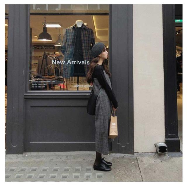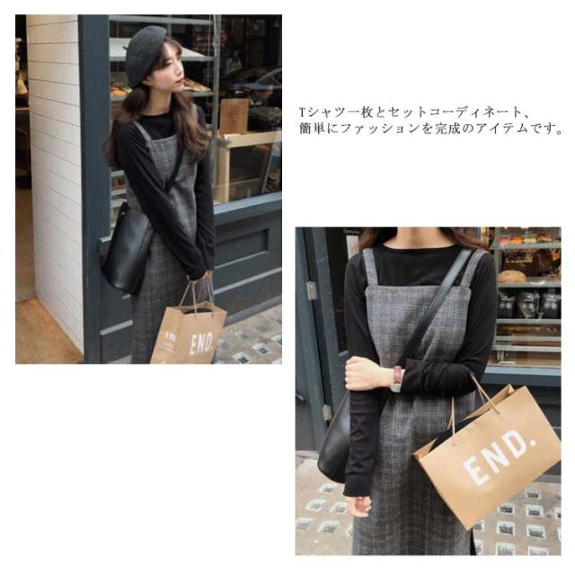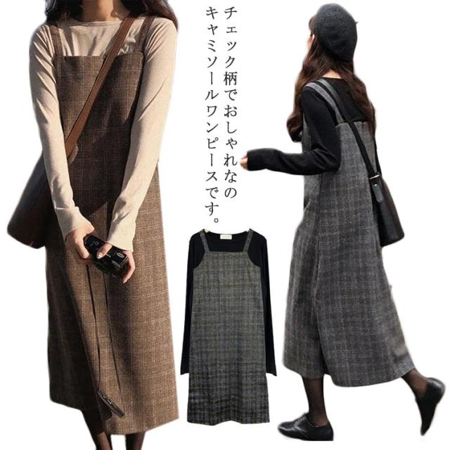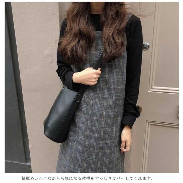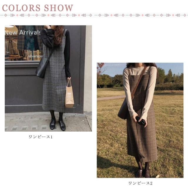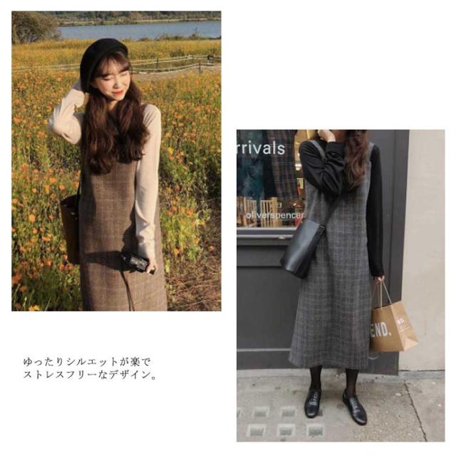 送料無料 ジャンパースカート レディース ワンピース チェックワンピース ロングワンピース チェック柄 ノースリーブ スクエアネック ビンテージ かわいい 秋冬 おしゃれ 大人 通勤 着?せ S M L XL