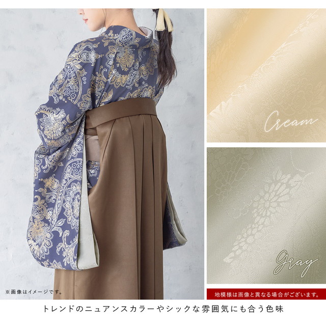 長襦袢 洗える 袴セット用 女性用 二尺袖 グレー クリーム 和装小物 短め 卒業式