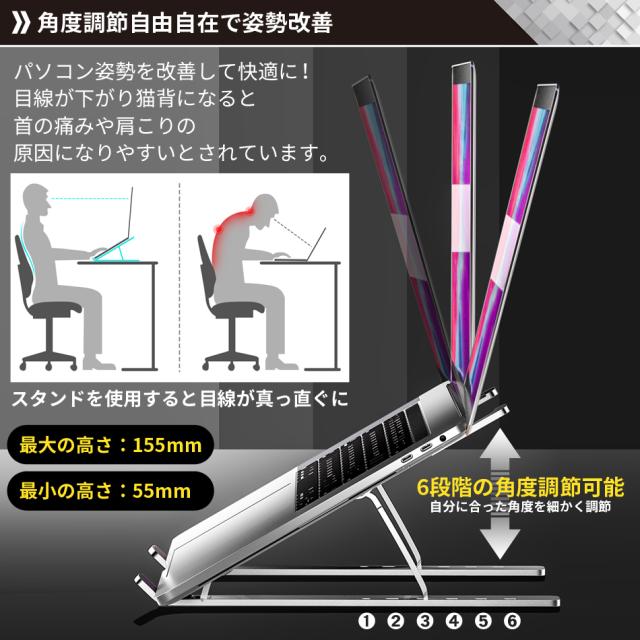 ノートパソコンスタンド pcスタンド おしゃれ 折りたたみ式 アルミ ノート ノートPCスタンド パ 高さ調節 冷却 パソコン台 角度調整