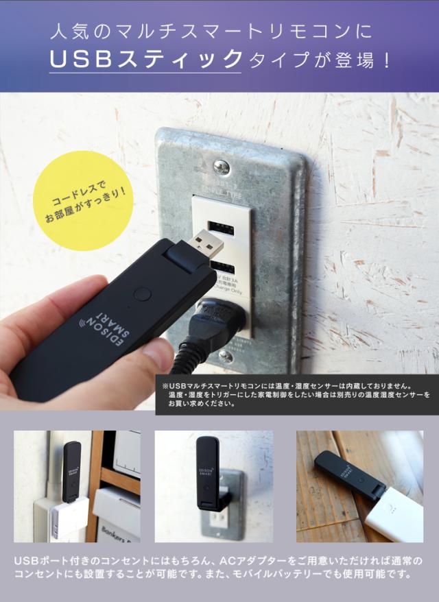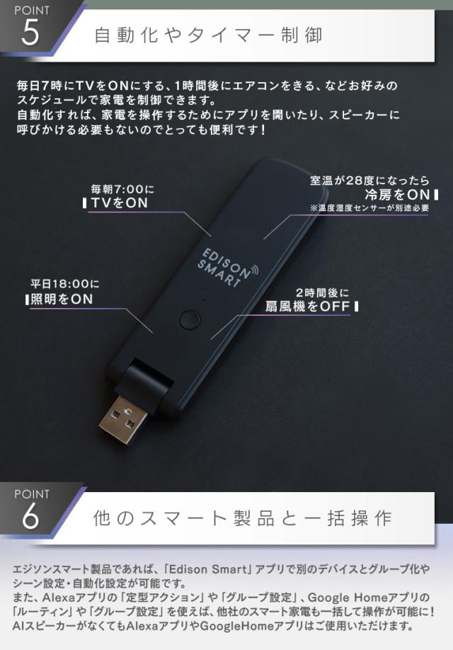 エジソンスマート USBマルチスマートリモコン 赤外線学習リモコン スマート Wi-Fi 家電をスマート化 自動化 タイマー スケジュール制御 遠隔操作 コードレス USBスティック 薄い シンプル 黒 かっこいい おしゃれ アレクサ対応 グーグルホーム対応 Siri対応 agesugi_ska
