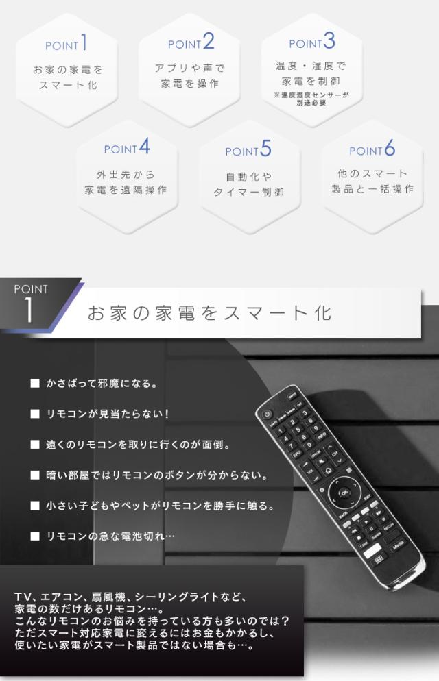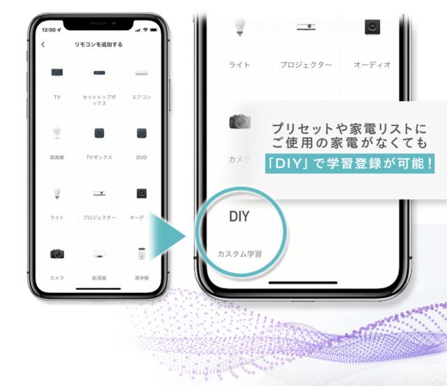 その後、赤外線リモコンを登録(学習)させるだけで部屋中の家電がスマホや声で操作可能に♪