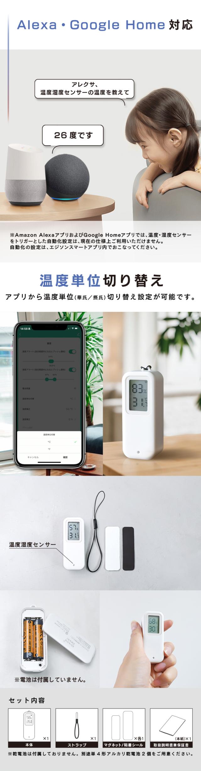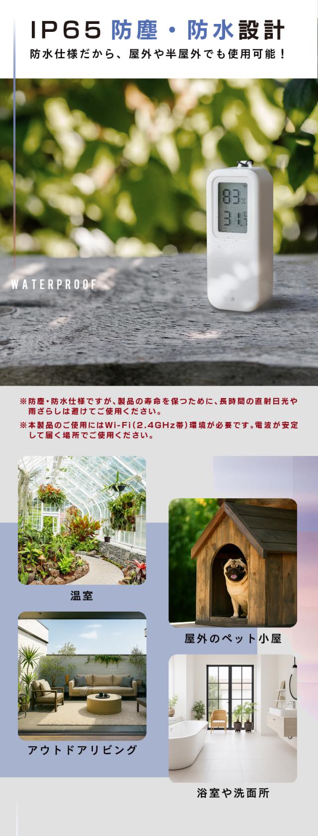 温湿度計 防水 IP65 防塵 屋外対応 小型 コンパクト 電池式 コードレス Wi-Fi接続 アプリで管理・記録 アラート通知 高精度 デジタル 温度計 湿度計 遠隔確認 Alexa Google Home対応 エジソンスマート Edison Smart 温度湿度センサー ハブ不要 iPhone Android対応 スマホ