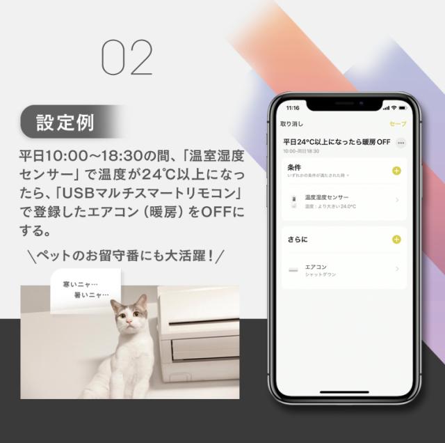 設定した温度、湿度になると、家電を自動でON/OFF!