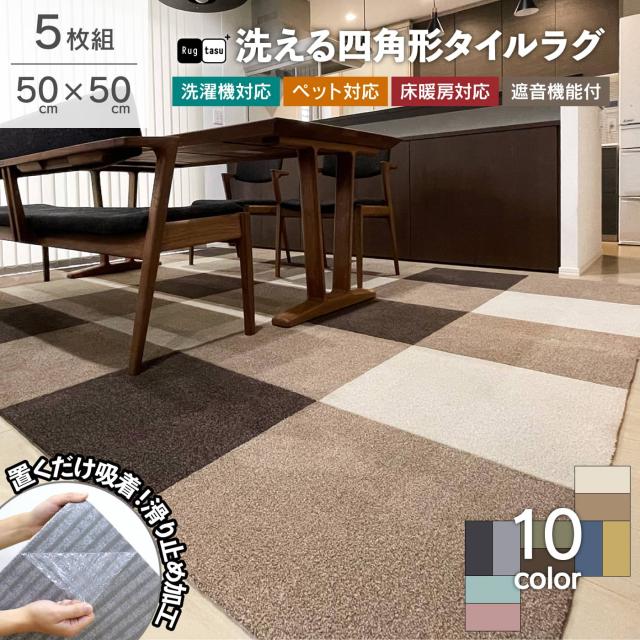 送料無料 ラグタス タイルラグ スクエア 5枚セット 洗える タイルカーペット 50×50 四角形 滑り止め タイルマット 無地 防音 ペット 対策 おすすめ 床保護マット チェアマット タイル 床暖房対応 子供部屋 ラグ 寝室 リビング フローリング マット 犬 床 傷 防止 おしゃれ