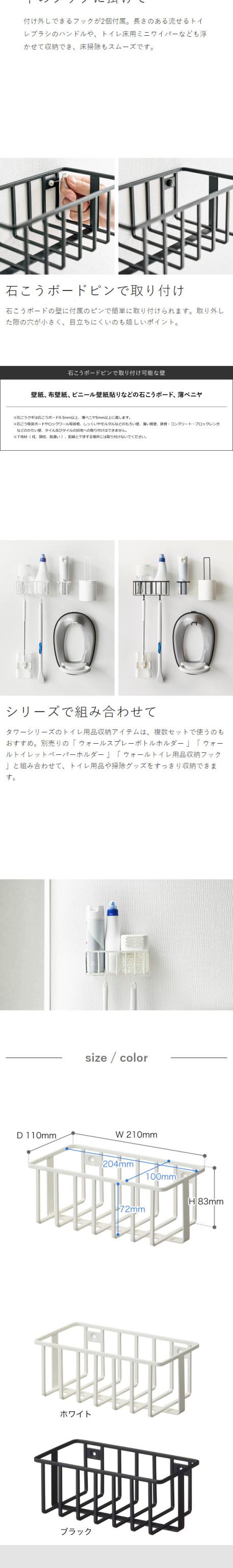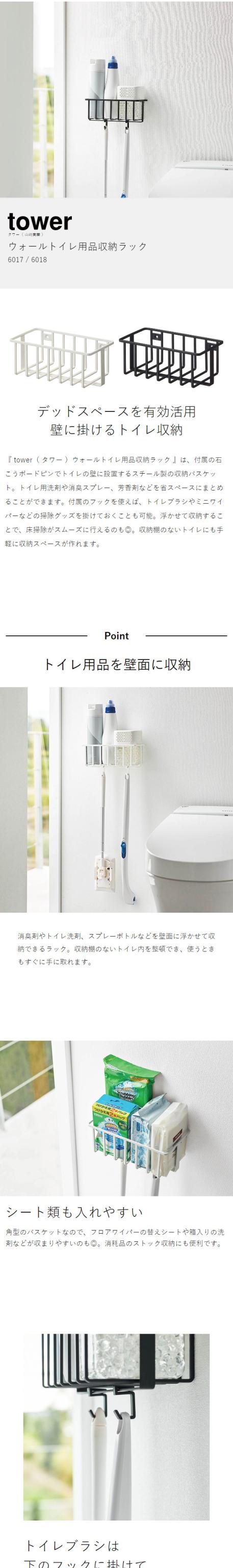 [ ウォールトイレ用品収納ラック タワー ]山崎実業 tower トイレ 収納 壁掛け ラック 棚 壁面収納 消臭剤 洗剤 スプレーボトル フック バスケット カゴ 省スペース 北欧 おしゃれ モノトーン yamazaki ブラック ホワイト 6017 6018