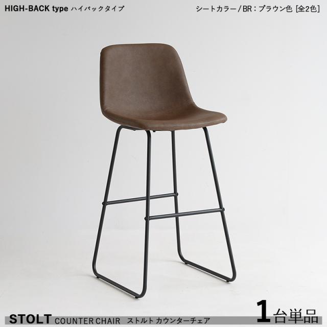 STOLTO ストルト カウンターチェア ハイバックタイプ 1脚単品 ブラウン色シート 合成皮革レザー張り ハイチェアバーチェア バーカウンターチェア