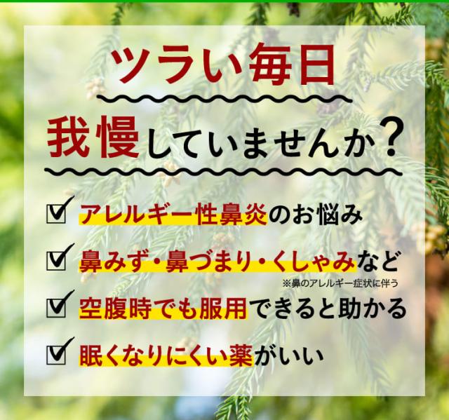 (2) 花粉などの季節性のアレルギー性鼻炎症状に使用する場合は、花粉飛散予測日から、又は、症状が出始めたら早めに服用を始めると効果的です。