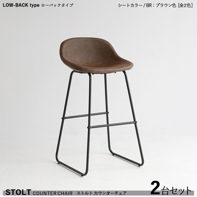 STOLTO ストルト カウンターチェア ローバックタイプ 2脚セット ブラウン色シート 合成皮革レザー張り ハイチェアバーチェア バーカウンターチェア