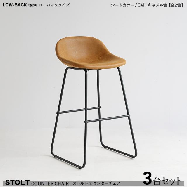 STOLTO ストルト カウンターチェア ローバックタイプ 3脚セット キャメル色シート 合成皮革レザー張り ハイチェアバーチェア バーカウンターチェア
