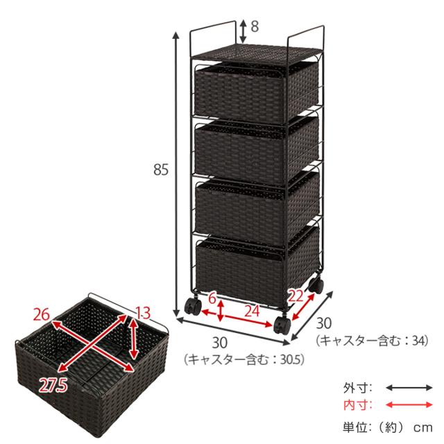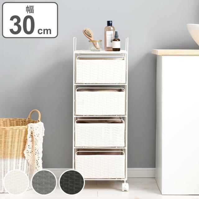 ランドリーチェスト 4段 幅30cm 高さ85cm キャスター付 引出し スチール ポリエチレン ( ラタン調 ランドリー チェスト ラック 防水 アジアン 収納 かご ラタン風 洗濯 ランドリーラック 撥水 収納ラック 樹脂製 キャスター )