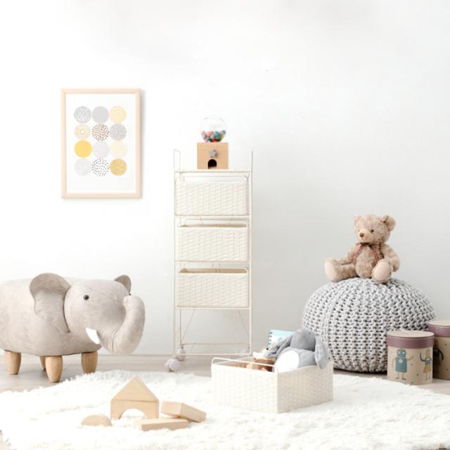 シンプルなデザインとシックなカラーが、様々なテイストのお部屋やシーンで大活躍します。ソファ横の収納棚としてやディスプレイスペースとしてもぴったりです。引出しごと遊ぶスペースに運べて、お片付けも楽ちんなのでキッズルームにも。