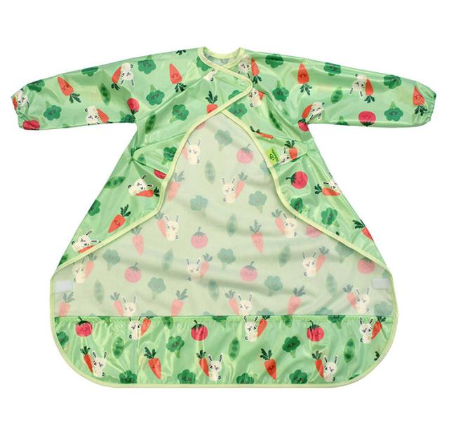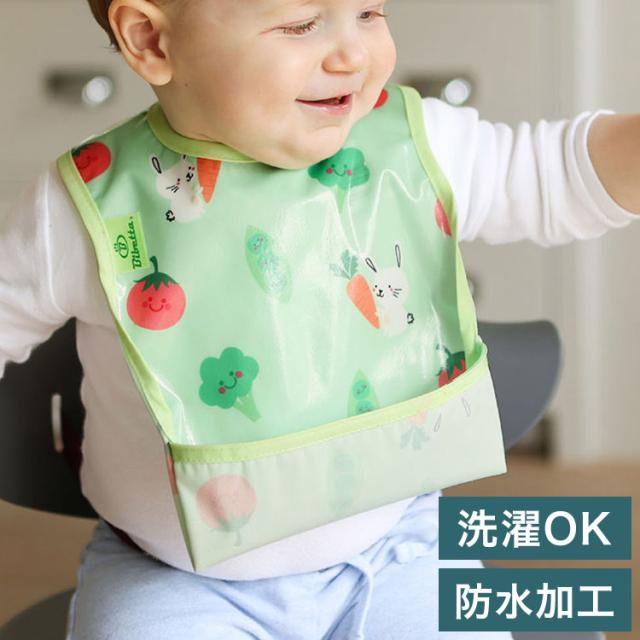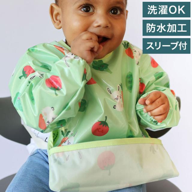 ビベッタ Bibetta ワイプイージー カバーオール 長袖ビブ グリーン バニーアンドベジタブル ベビー キッズ エプロン【送料無料】