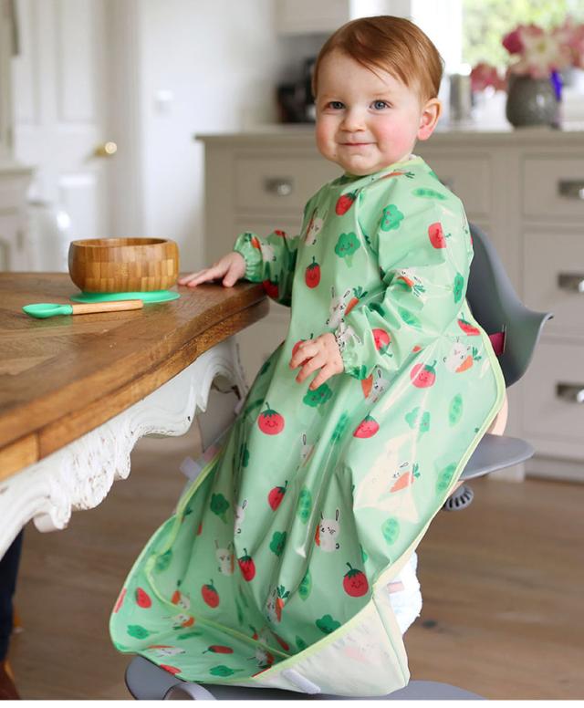 イギリスで人気のテーブルクロス一体型のお食事エプロン。柔らかく軽量で油汚れも拭き取れる BLW 離乳食に最適
