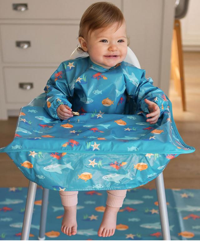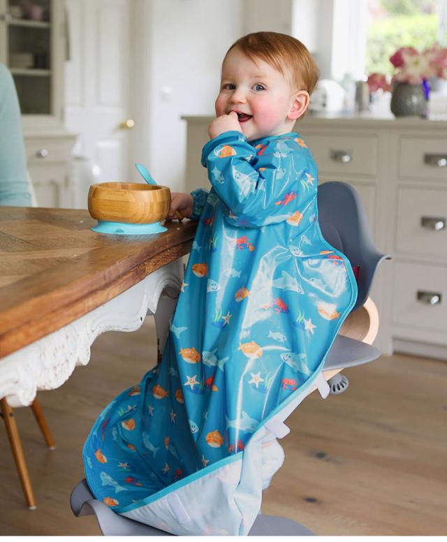 イギリスで人気のテーブルクロス一体型のお食事エプロン。柔らかく軽量で油汚れも拭き取れる BLW 離乳食に最適