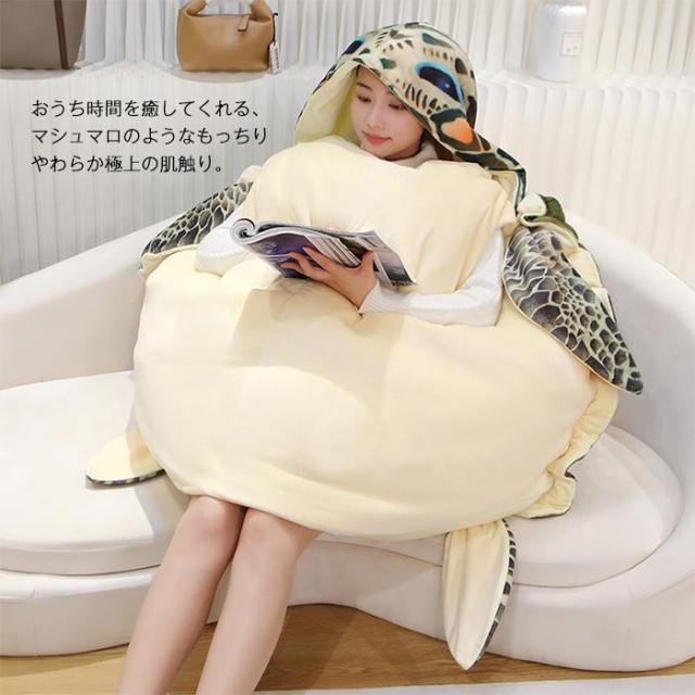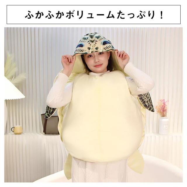 ぬいぐるみ 海亀 ウミガメ抱き枕 服 動物衣装 仮装 着用可能 亀甲着ぐるみ 特大 150cm クッション コスチューム 寝具 寝袋 ソファーベッド可愛い かわいい おもしろい プレゼント ギフト 大人用
