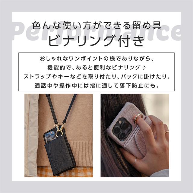 ・【ビナリング付き】ストラップやキーなどを取り付たり、バックに掛けたり、通話中や操作中には指に通して落下防止にも。