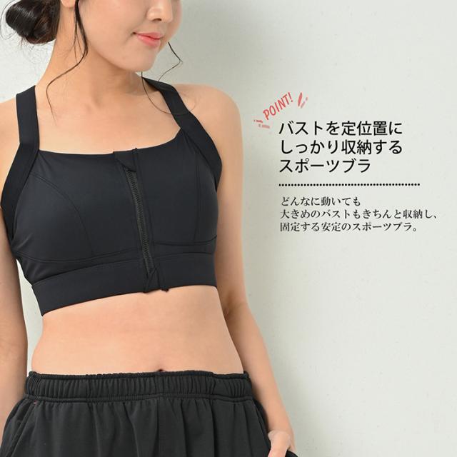 大きな動作も楽々なバッククロス仕様。フロントZIPスポーツブラ。