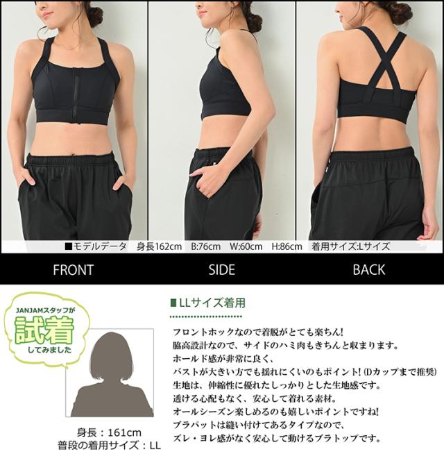 送料無料※沖縄/北海道対象外 大きいサイズ レディース ブラトップ フロントジップ バッククロス 内側ホック スポーツウェア インナー トップス L/LL/3L/4L/5L/6L ゆったりサイズ ぽっちゃり女子 プラスサイズ